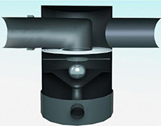 雨水棄流裝置主要應用在雨水收集利用系統中。在流經初期氣流裝置時,因重力的作用,雨水將首先通過低位敞口的排水污管排放掉。在雨量增大時,打在擋板上的壓力增大,位于排污管上端的浮球在水流壓力的作用下將排污管關閉,進行收集。