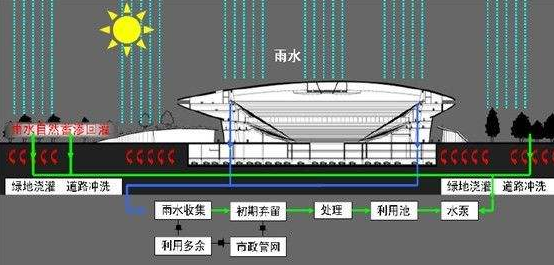 常規系統裝置有:截污掛籃,棄流裝置,閥門井,蓄水PP模塊,檢查井,毛發收集器,旋流沉砂器,紫外線消毒裝置,加藥消毒裝置,凈化一體機裝置,恒壓罐,電控柜,管道,電線,各種泵閥。