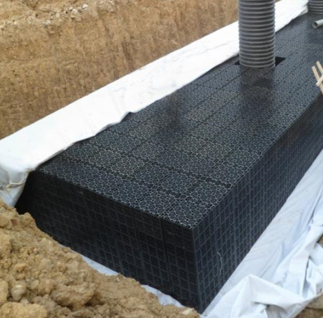 雨水收集模塊由再生環保材料制作,綠色環保,深埋地下不破壞整個生態環境,維護簡單,且可回收再利用。