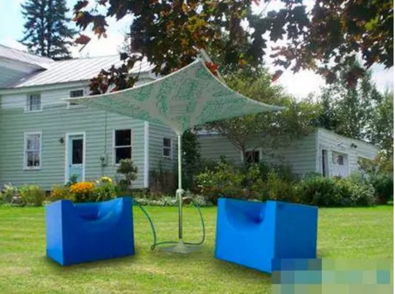 與集雨池和花園桌一樣,這種名為“Volume Chair”的設計把大部分后院的座椅變成一個蓄水箱。在這種情況下,一把反向傘(還能起到遮陽的作用)會收集雨水,并通過軟管把它輸送到椅形水箱里。