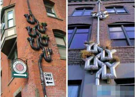 這種怪異的建筑雨水管設計,可把尋常的雨水管轉(zhuǎn)變成一個裝飾性種植器,在輸送雨水的過程中,把一些水分配到植物的根部。